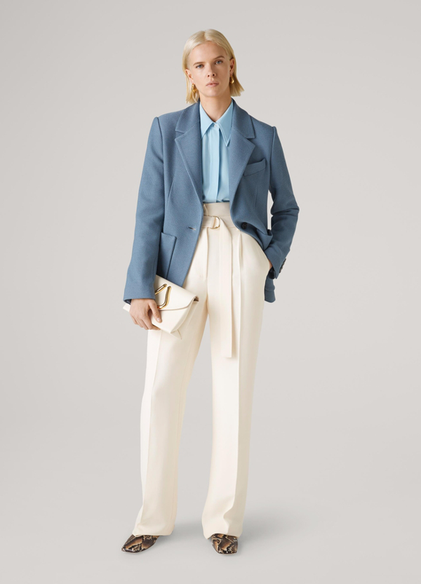 John collection is especially renowned for its knits, including elegant dresses and incredibly soft sweaters, but the brand is also beloved for its sharp suits, sophisticated coats and chic blouses.